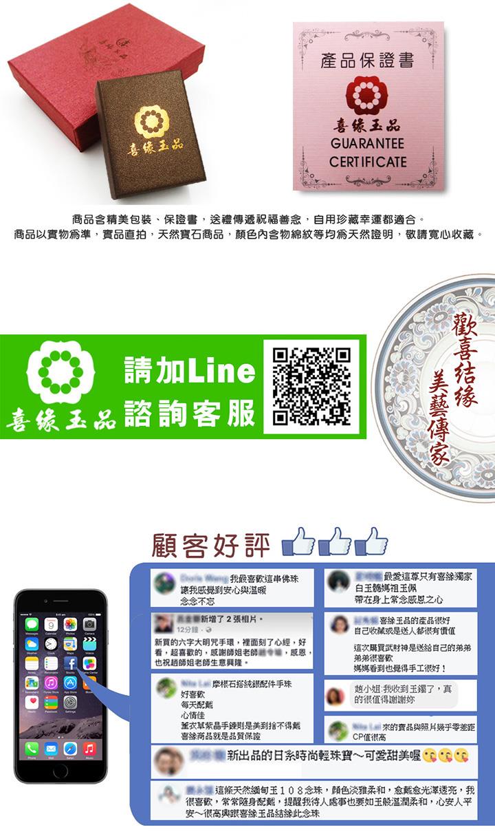 商品規格 商品組合:戒指*1 品牌:喜緣玉品 配件:包裝盒*1 保證書*1 尺寸:主石約 8.6*6mm 材質:天然葡萄石 /925純銀真金電鍍活圍 晶鑽鑲座 顏色:天然 體驗說明 使用方法說明 一般 注意事項 (本品無試用) 注意事項:由於本產品屬於人工爪鑲精緻產物,為期長久裝飾您的高貴及美麗,請妥善配戴及保養。 佩戴及保養方法: 1. 適時取下:注意含酸、鹼性的物質 :應避免接觸海水、溫泉、肥皂等酸鹼值不同物質;請於洗澡、做家事、游泳時適時取下。平日著裝時應先化妝與噴灑香水後,再佩戴珠寶,以避免較高濃度的化妝品或香水直接接觸到珠寶表面。 2. 平日保養:以冷水沖洗,棉布吸乾水分。避免使用牙膏及刷子清理。產品不配戴時,請以夾鍊袋收藏並置於珠寶盒內。 本產品於正常使用範圍內損壞,一年內本公司可提供免費維修服務。若因人為因素或使用不當時,則不在此限。 ◆退貨條件:如需退換貨,商品本身、贈品、包裝彩盒均務必保持完整齊全 ,退貨必須保留紙箱及商品組合之齊全及完整性。