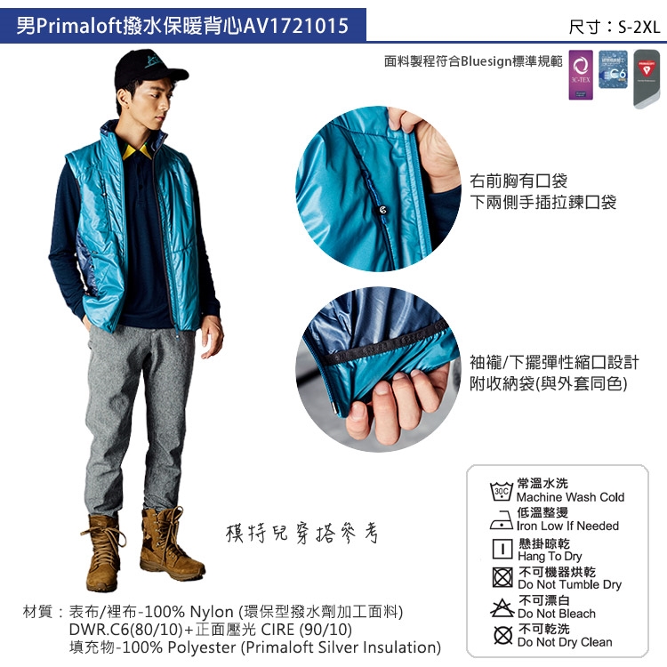商品規格 品牌定位 : 戶外機能品牌 品牌 : ADISI 款式 : 背心外套 適穿性別 : 男生 尺寸 : M, L, XL, XXL 版型 : 正常 主材質 : 尼龍 材質說明 : 表布/裡布-100% Nylon (環保型撥水劑加工面料) DWR.C6(80/10)+正面壓光 CIRE (90/10) 填充物-100% Polyester (Primaloft Silver Insulation) 適穿季節 : 秋冬 顏色 : 黑色系, 藍色系 流行元素 : 全素面 功能 : 防潑水, 一件式 產地 : 中國 品牌國家 : 台灣 體驗說明 使用方法說明 X 注意事項 X